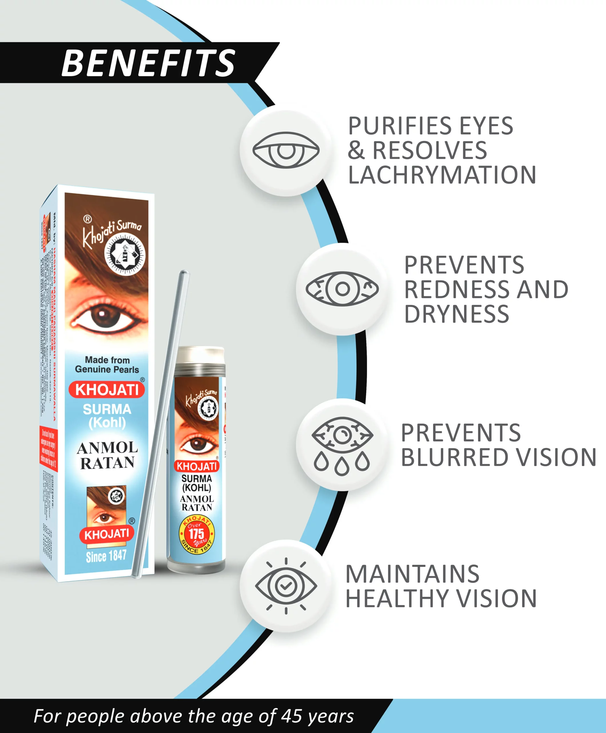 Khojati Surma Anmol Ratan is a unique blend of herbs and minerals that promote the general wellbeing of eyes. It purifies eyes, resolves irritation, and helps in maintaining healthy vision.