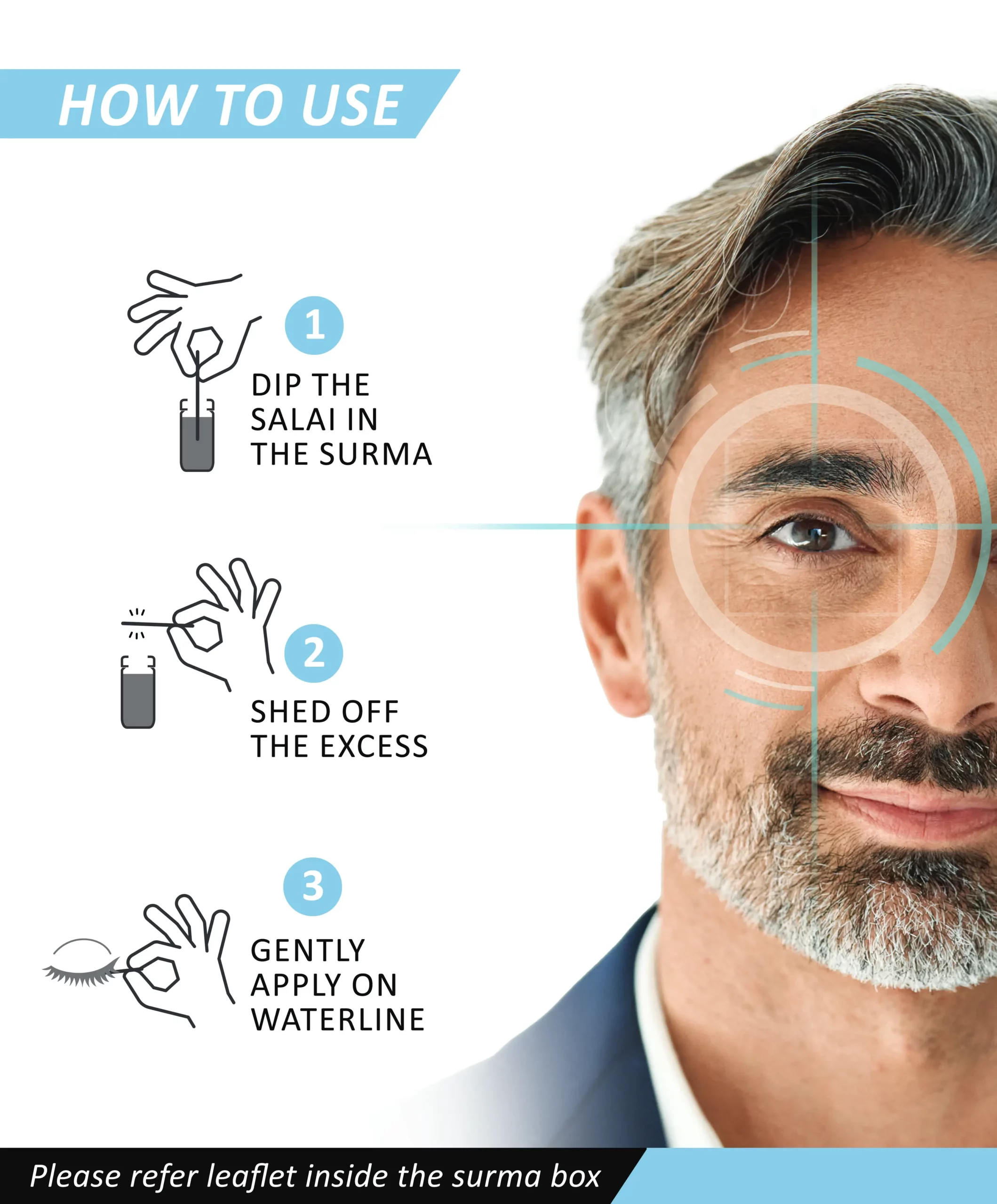 - Please carefully read the leaflet inside surma box before use