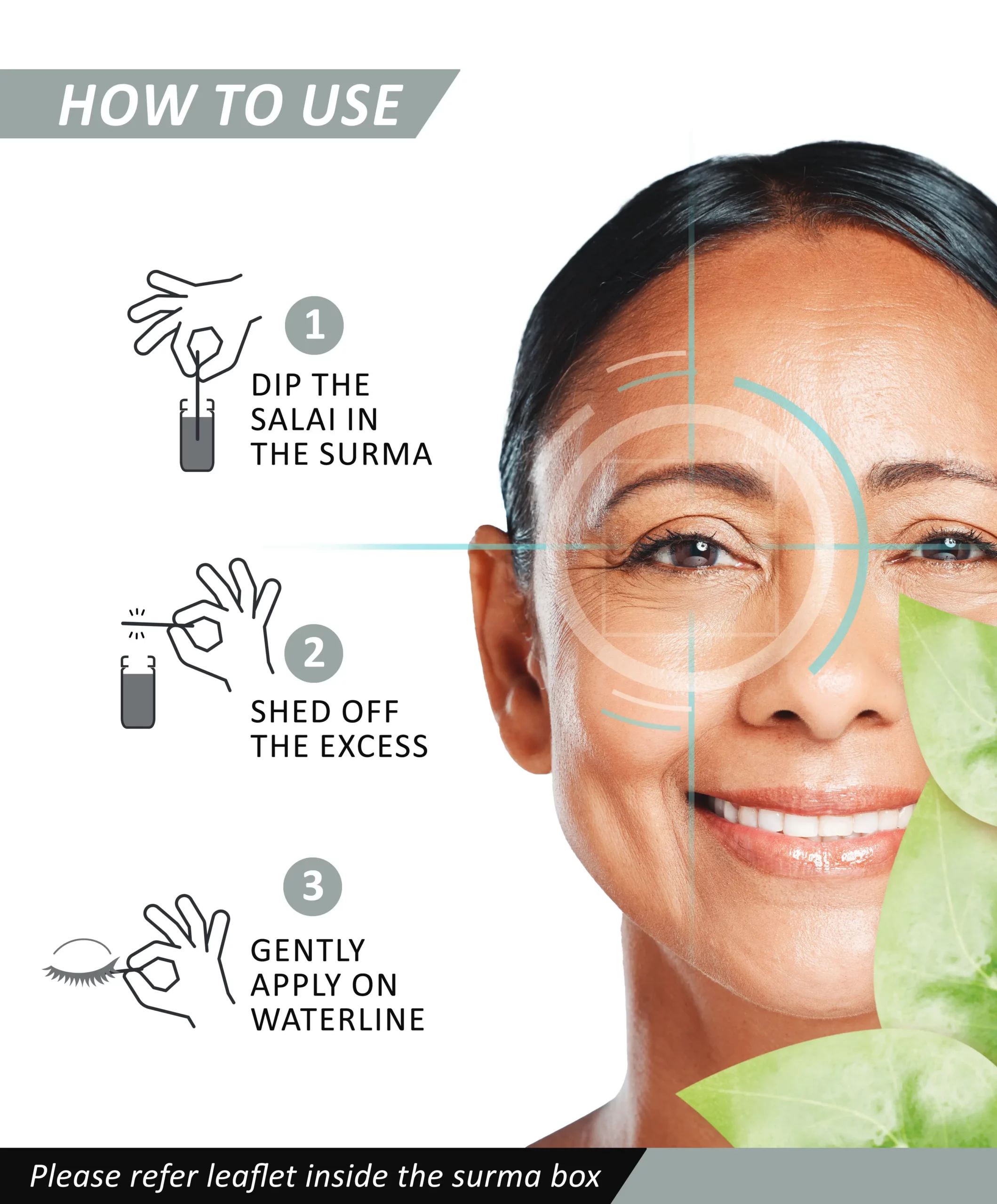 - This Surma produces a stinging sensation which dissolves in less than 5 minutes. We recommend using Extra Special Mamira Surma after 2 minutes of applying Khas White to soothe eyes.